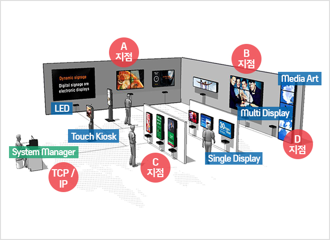 기업과 소비자를 효과적으로 연결해주는 Video Wall 전용 Display Device Solution 다양한 고객의 Needs에 부합할 수 있는 싱글 & 멀티디스플레이 Systemd으로 High Quality 중.저가형 제품입니다.